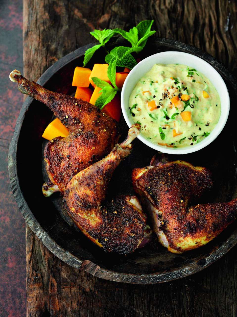 2. Start with the Cumberland reduction. Add the port, redcurrant jelly, orange zest and juice, and one generous teaspoon of mustard to a saucepan, and place over a high heat. Reduce until thick and syrupy, stirring occasionally to break up the mustard and redcurrant jelly. Remove from heat and set to one side.